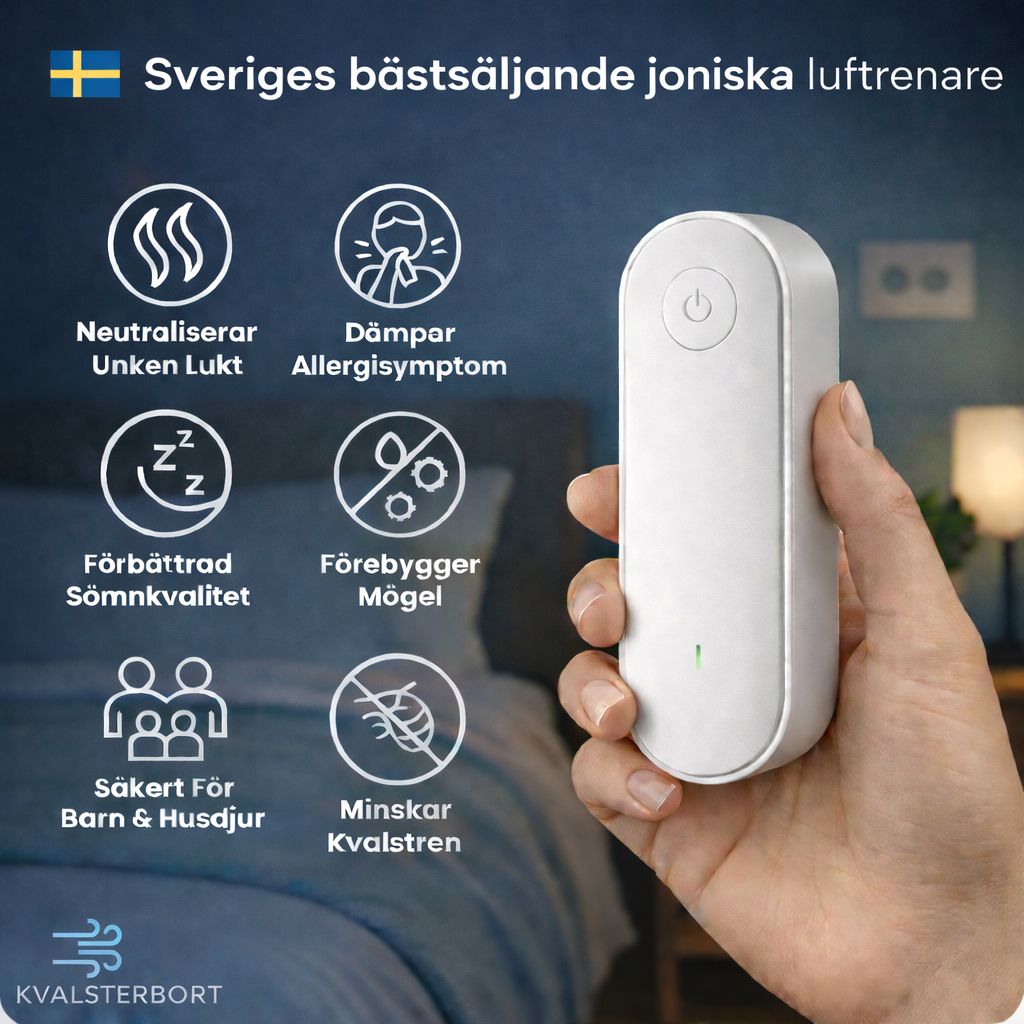 Kvalsterbort AllergyFree är en kompakt och effektiv jonisk luftrenare som hjälper dig skapa en renare och mer hälsosam inomhusmiljö. Den neutraliserar luftburna allergener från dammkvalster, minskar dålig lukt och bidrar till en friskare luft i hemmet.